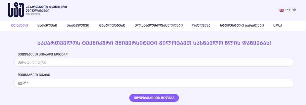 Newly enrolled students and those who haven’t used the email provided by Georgian Technical University yet should visit the website to receive their personal data: https://studinfo.gtu.ge